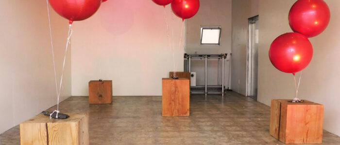 風船はひとたび手を離すと、空のどこまでも遠くへと自由に飛び立っていきます。一方、78年前に多くの命を奪った沖縄戦の証言者でもある戦争遺物は、今なお土の中に残されて、流れる時間の中で風化していこうとしています。こうして私たちが立っている美術館の下にも、まだ人知れず残されているのかもしれない砲弾の欠片。人の目に触れぬ戦争の痕跡たちは、記憶の風化に伴って、まるで地下深くへとどんどん沈んでいくかのようです。