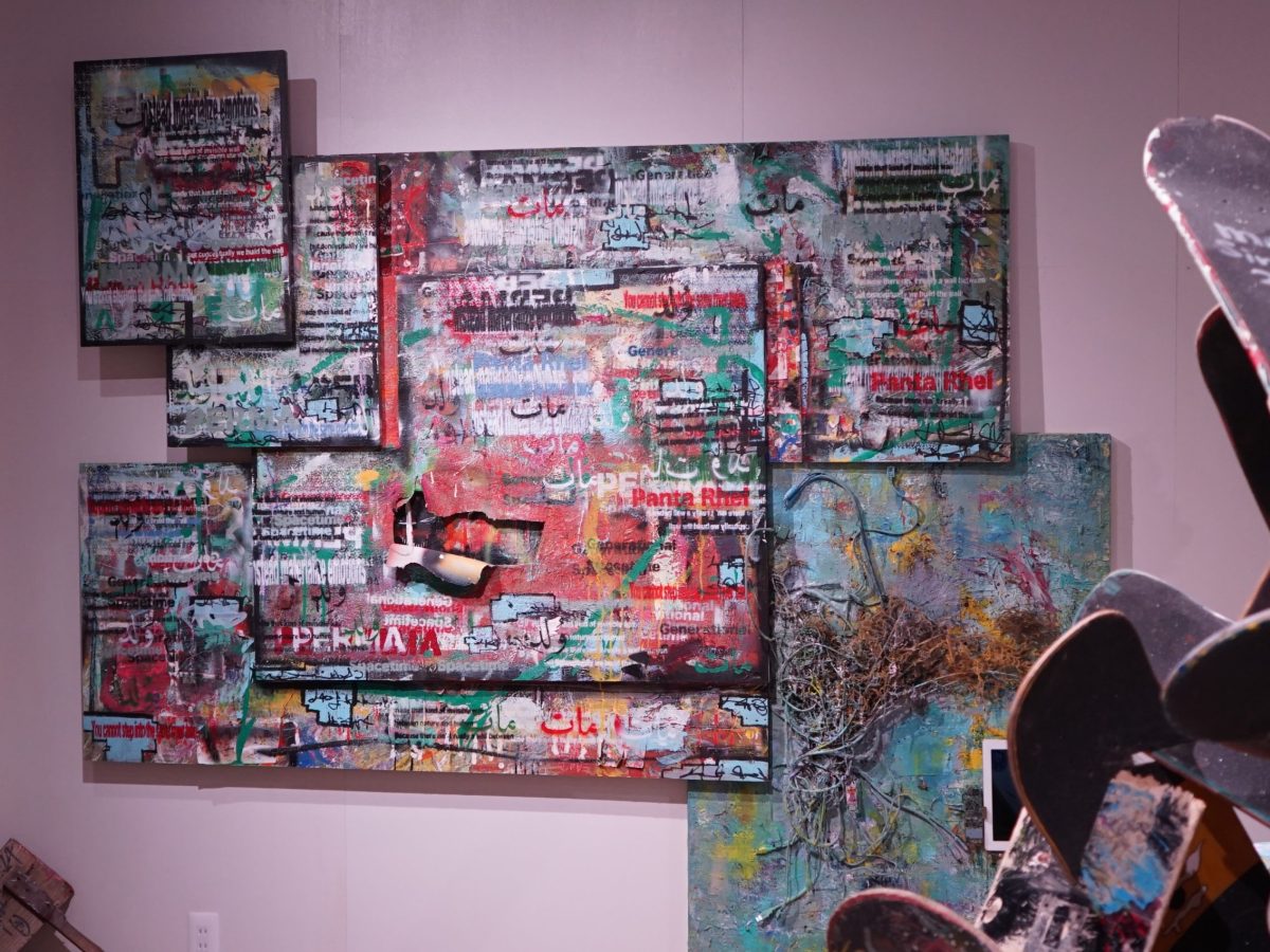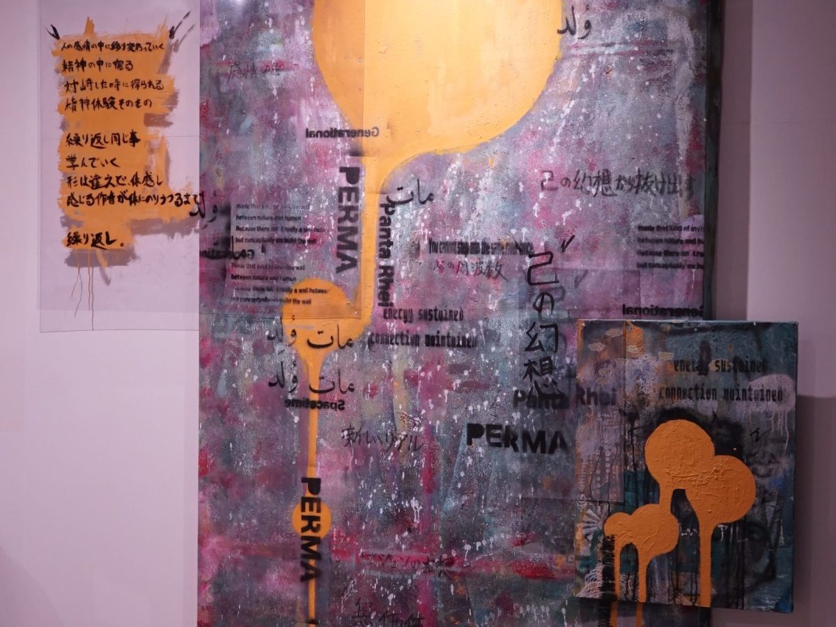 “After concluding the exhibition “Emptiness And Time” at Gallery 9.5 NAHA in 2023, which addressed contemporary societal issues arising from virtual networks, Daichi Koyama’s solo exhibition in 2024 showcases mixed media works that blend Japanese tradition with international inspirations from his travels in France and Morocco. His works present a fresh, boundary-less contemporary voice. Demonstrating a deep connection to his evolution from a skater/artist and his upbringing in Okinawa, Koyama’s works explore the relationship between the current global political landscape, ego, and the uncertainties of the future technological era. His art comments on these themes while maintaining the innocence and rebellious spirit inherent in his essence as a skater and creator.”