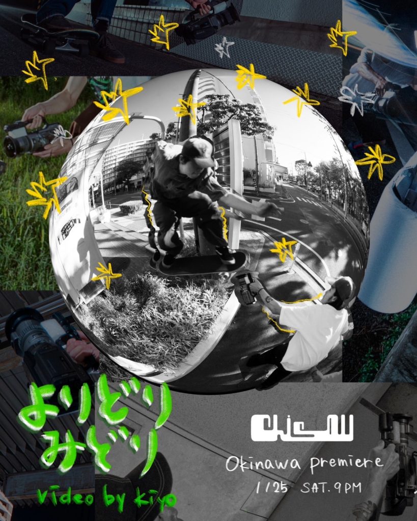作品の名前は “よりどりみどり” その名の通り各地からたくさんの個性豊かなスケーターに出演してもらっております、スポットも大阪だけではなく各方面にフィルマー彼自身が出向き撮影しているので、大阪,東京の都会のスポットや沖縄の自然豊かなスポットも混ざっている場所もあるので、ある意味そうゆう違和感も楽しんでもらえると嬉しいです。
